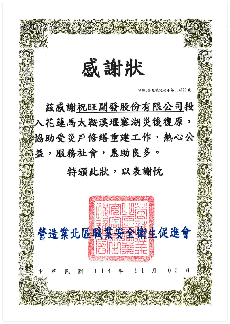 祝旺營造第一時間響應救災行動,秉持深化「企業社會責任(CSR)」的精神,積極投入在地修繕與重建工程。我們派遣專業工程團隊,協助受災住戶進行家園重整,以實際行動支援地方恢復正常生活環境,期盼能為受災居民帶來溫暖與安定,攜手共渡難關。
